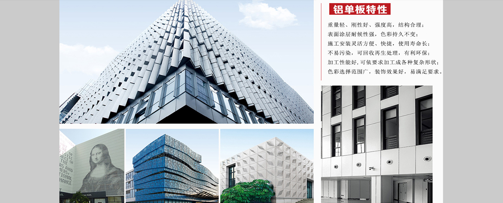 鋁單板幕墻產(chǎn)品具有強度高、重量輕、耐腐性強、結(jié)構(gòu)新穎、裝配方便、經(jīng)久耐用的特點。氟碳鋁單板能抗酸雨、鹽霧和各種空氣污染物,耐冷熱性能好,能抵御強烈紫外線的照射,能長期保持不褪色、不粉化,使用壽命長。但是再好的東西不去愛護它、保養(yǎng)它,更何…